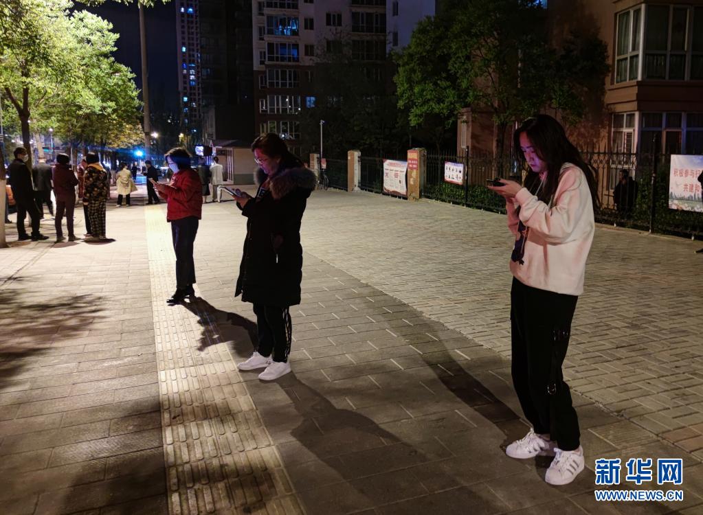 5月22日凌晨,西宁市民在空旷地带避险(手机照片)。