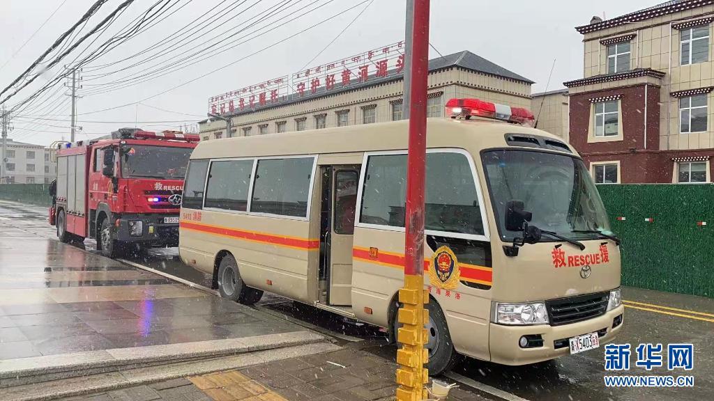 这是5月22日在青海省果洛藏族自治州玛多县城拍摄的救援车辆。