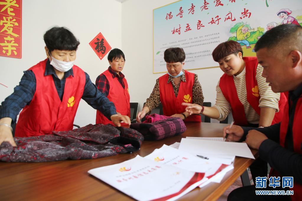 5月21日,山东省临沂市郯城县港上镇珩头西村洗衣志愿者在整理登记清洗完成的衣服。