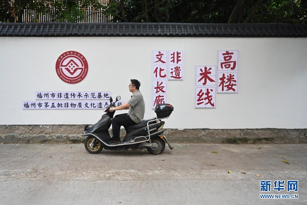 5月21日,在福建省福州市长乐区古槐镇高楼村,陈国锐骑电动车经过村里一面文化墙。
