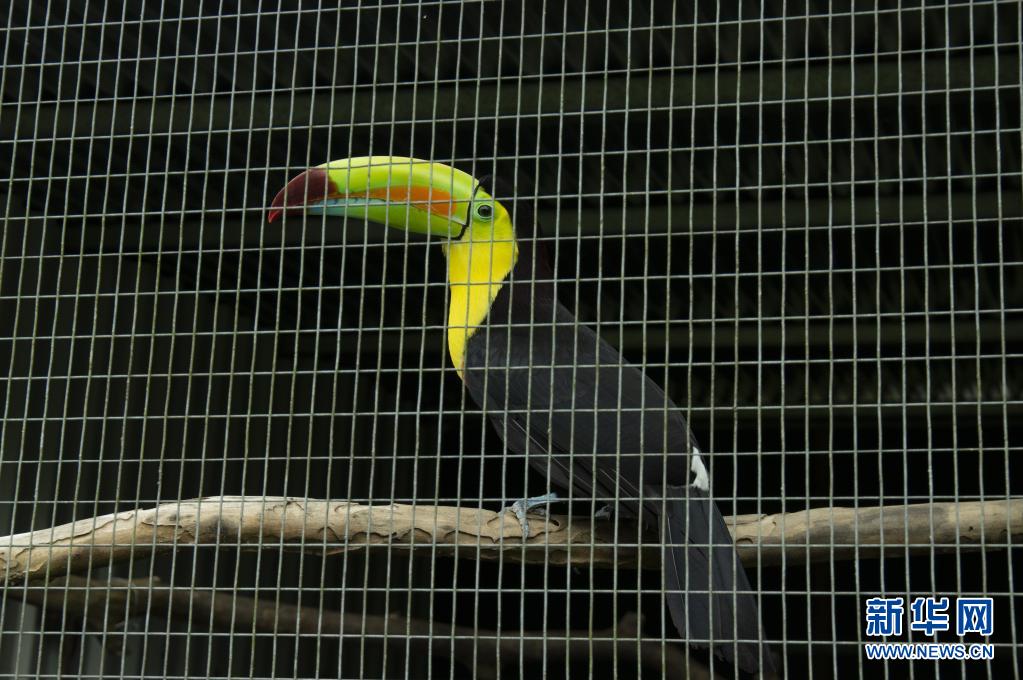这是4月20日在哥斯达黎加埃雷迪亚的“巨嘴鸟救助牧场”拍摄的一只被救助的巨嘴鸟。