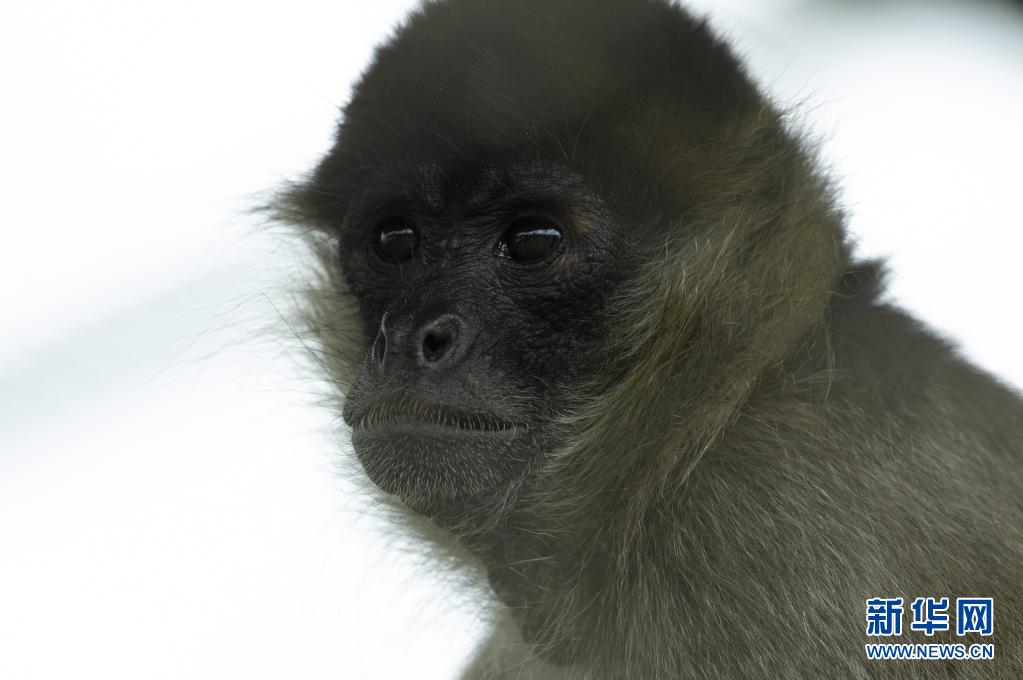 这是4月20日在哥斯达黎加埃雷迪亚的“巨嘴鸟救助牧场”拍摄的一只从非法野生动物买卖中解救的蜘蛛猴。