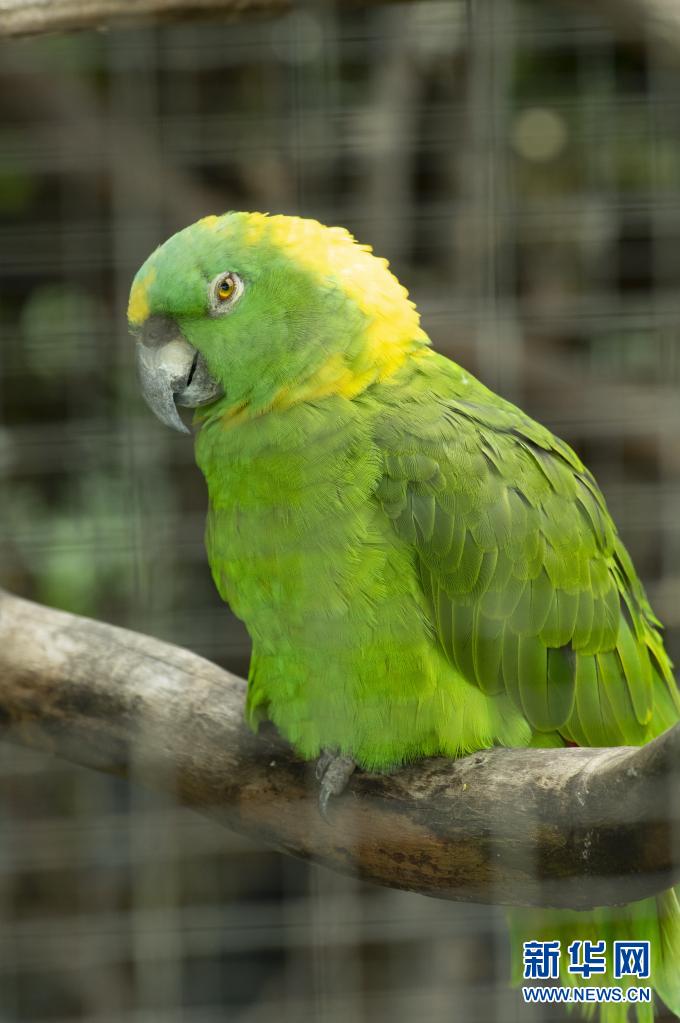 这是4月20日在哥斯达黎加埃雷迪亚的“巨嘴鸟救助牧场”拍摄的一只被救助的遭宠物主人遗弃的黄颈亚马逊鹦鹉。