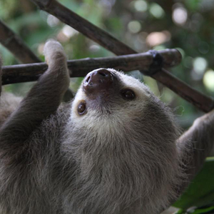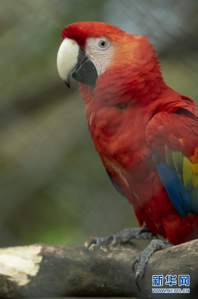 这是4月20日在哥斯达黎加埃雷迪亚的“巨嘴鸟救助牧场”拍摄的一只被救助的遭宠物主人遗弃的金刚鹦鹉。