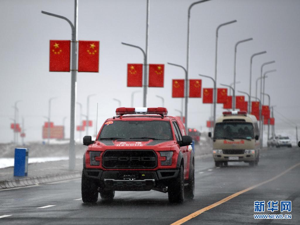 5月22日,救援车辆行驶在玛多县城。