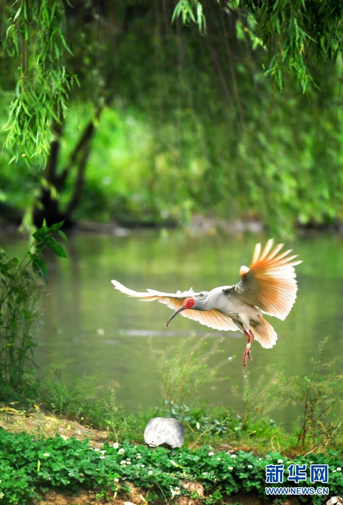 汉中市洋县朱鹮生态园内的朱鹮(5月13日摄)。新华社记者 刘潇 摄