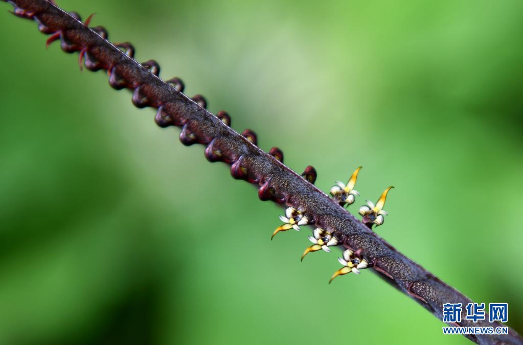 这是在国家(海南)热带植物隔离检疫中心兰科物种检测鉴定资源圃内拍摄的眼镜蛇石豆兰(5月21日摄)。