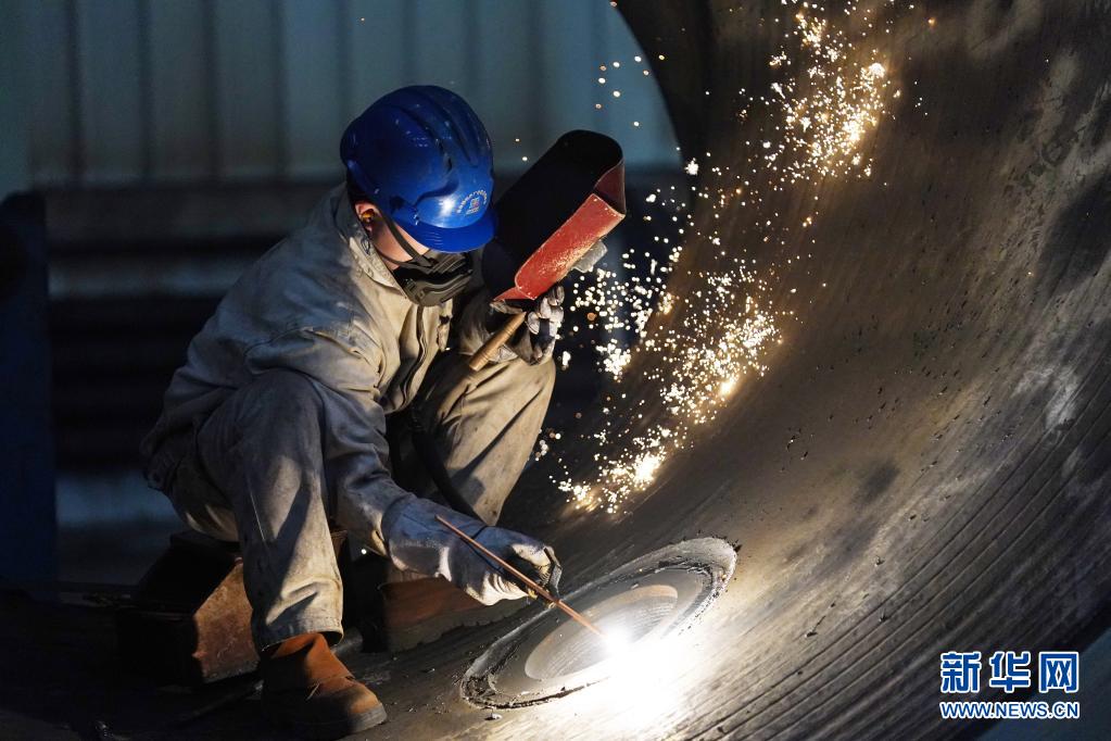 工人在哈电集团哈尔滨锅炉厂有限责任公司生产车间作业(2020年2月10日摄)。