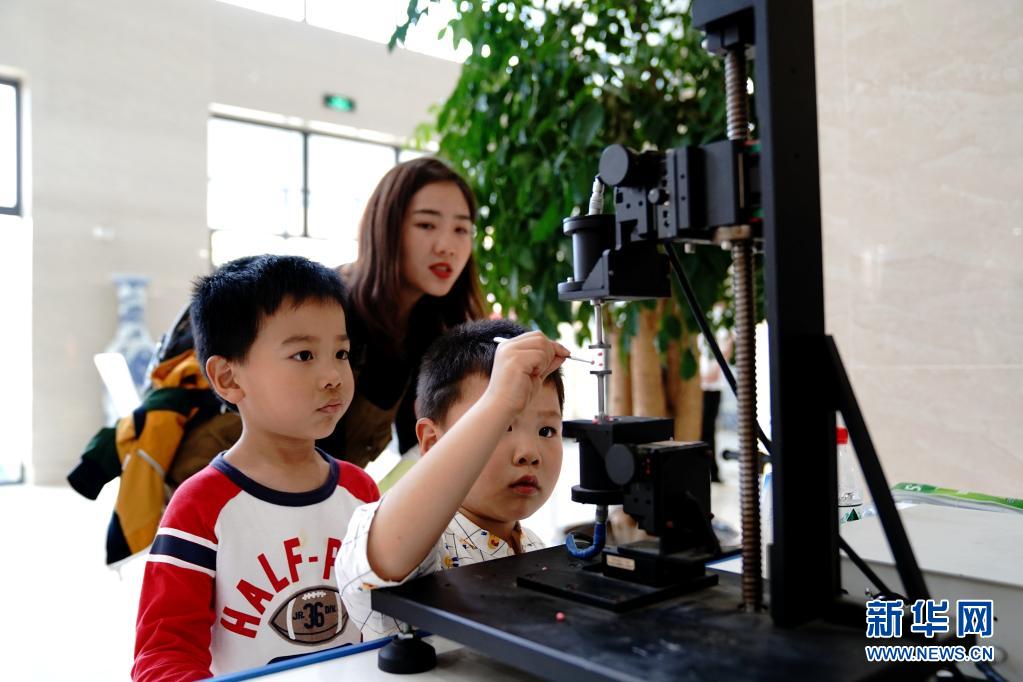 5月22日,小朋友在体验超声悬浮实验。