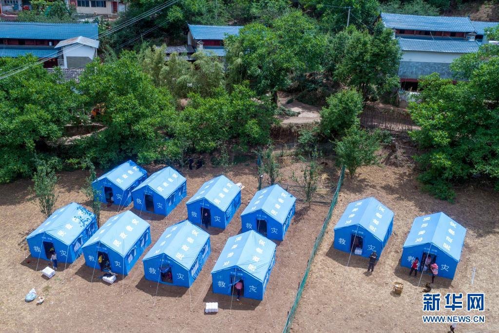 5月22日拍摄的漾濞县苍山西镇秀岭村救灾帐篷(无人机照片)。
