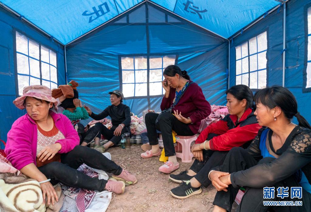 5月22日,漾濞县苍山西镇秀岭村受灾群众在救灾帐篷中休息。