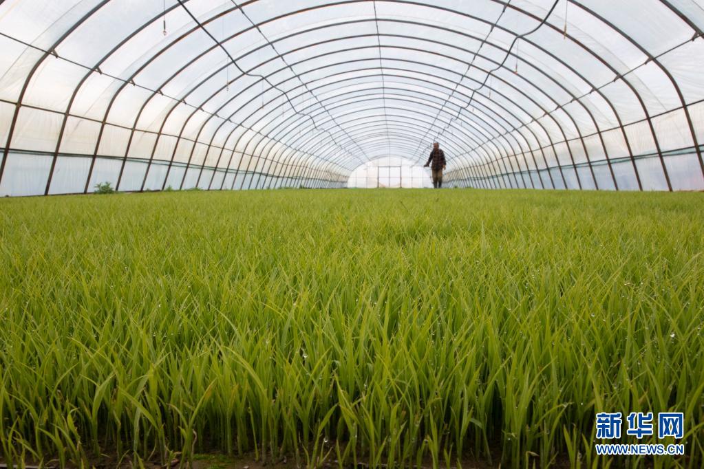 5月13日,工人在黑龙江省抚远市玖成水稻种植专业合作社养护秧苗。