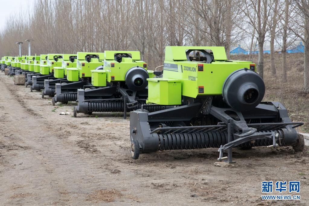 5月13日在黑龙江省抚远市玖成水稻种植专业合作社拍摄的秸秆打包机。