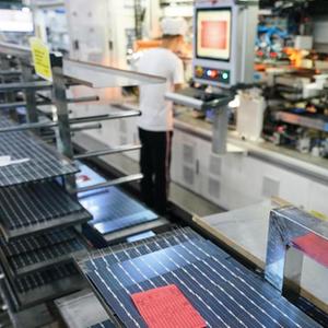 5月22日,在天合光能(宿迁)科技有限公司,工人在生产车间忙碌。