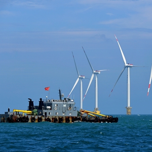 5月21日,一根直径6.7米的嵌岩单桩在福建省莆田南日岛西南侧海域成功植入海底。至此,由福能集团三川海上风电有限公司开发建设,中交一航局负责施工的29台单机容量7兆瓦风机(含6台嵌岩单桩基础型式、23台高桩承台基础型式)植桩全部完成,取得工程重要节点突破。