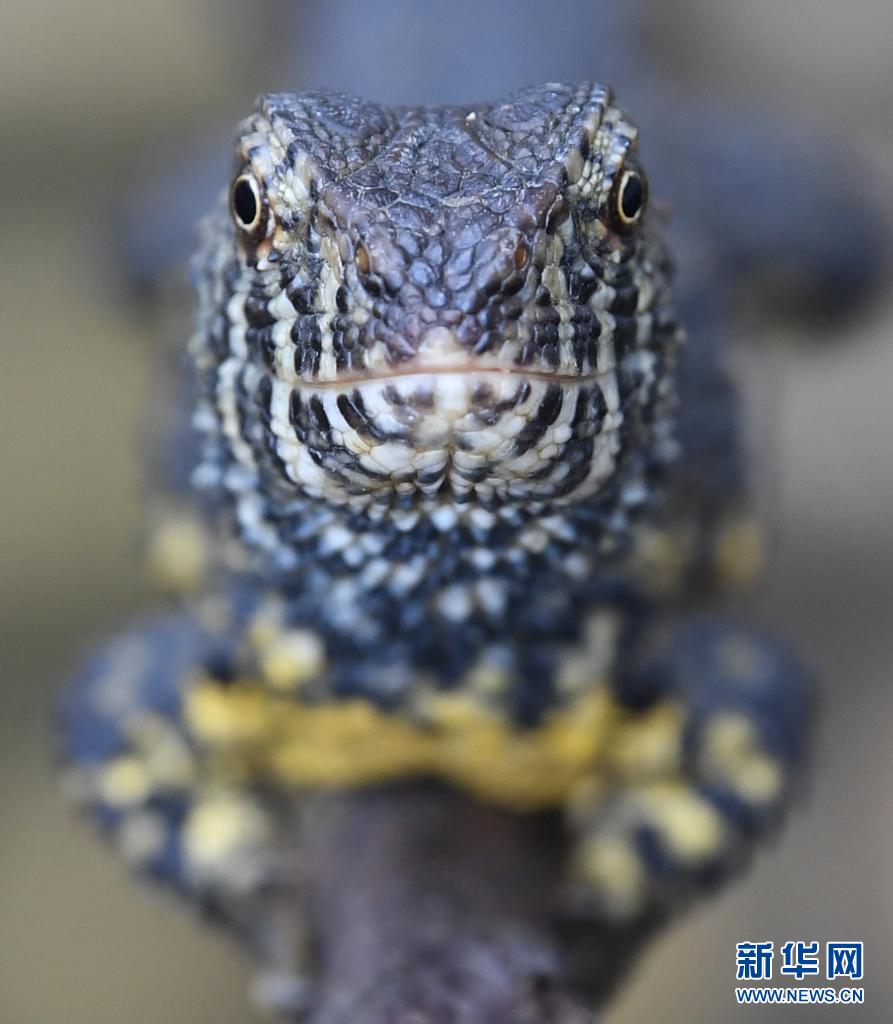 这是在广东罗坑鳄蜥国家级自然保护区鳄蜥研究中心拍摄的鳄蜥头部特写(5月13日摄)。鳄蜥是与恐龙同时代的动物,是第四纪冰川时期遗留下来的古老爬行类动物,有“活化石”的美誉。中国是鳄蜥的主要分布区,由于种群数量稀少,鳄蜥已被列为国家一级保护动物。近年来,在国家政策和资金的支持下,在林业部门、保护区和科研人员的努力下,我国鳄蜥野外种群数量保持稳定态势。