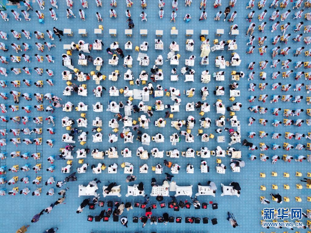 5月19日,小学生在现场进行书法展示(无人机照片)。当日,“颂百年风华·育时代新人”贵阳市云岩区百名小学生现场书法展示活动在贵阳市第四实验小学举办,小学生们现场进行书法展示,书写内容以庆祝建党100周年和积极向上的相关名人名言为主。