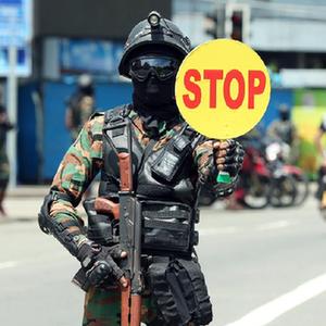 5月22日,斯里兰卡军人在科伦坡街头对过往行人和车辆进行检查。