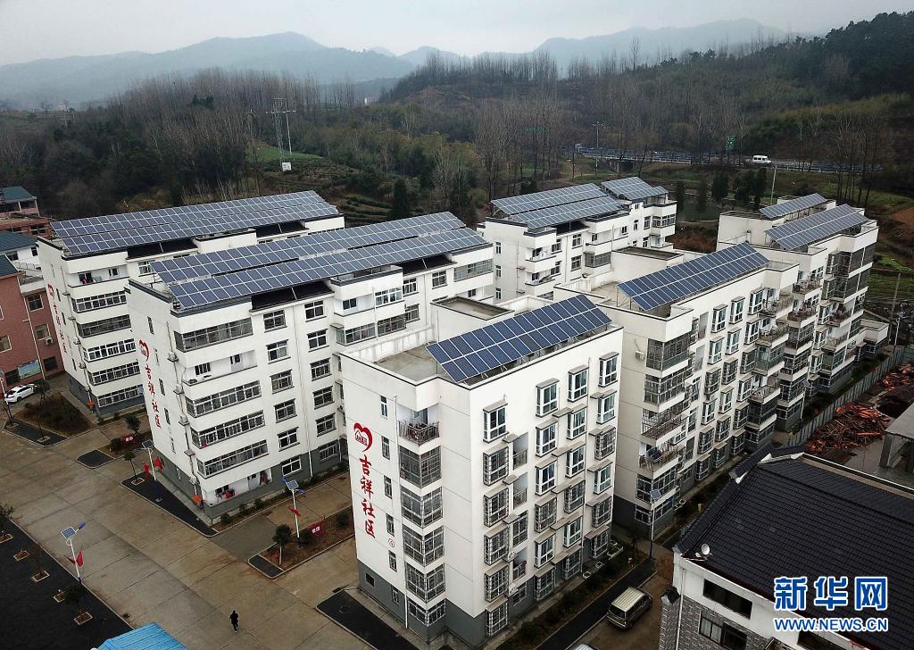 这是2018年3月7日拍摄的河南省新县泗店乡扶贫搬迁集中安置点吉祥社区(无人机照片)。新华社记者李安摄