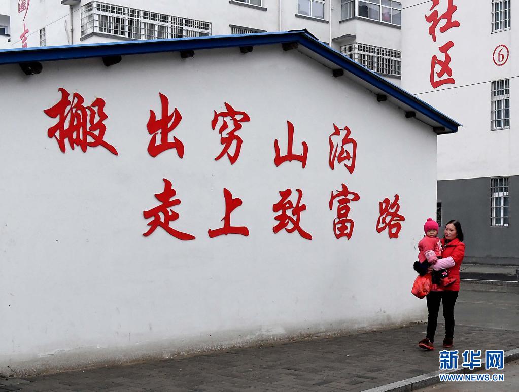 一位村民走出河南省新县泗店乡扶贫搬迁集中安置点吉祥社区(2018年3月7日摄)。新华社记者李安摄