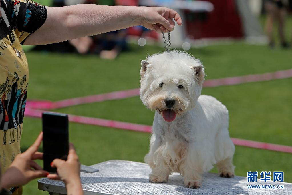 5月23日,一只宠物犬在罗马尼亚首都布加勒斯特参加选美比赛。新华社发(克里斯泰尔摄)