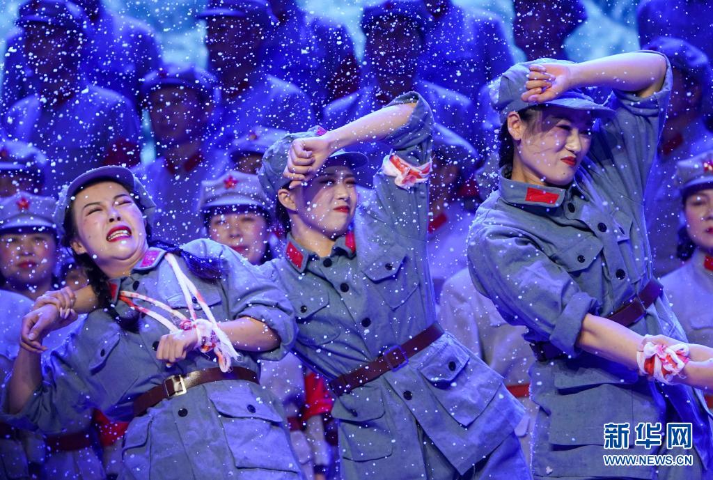 长征源合唱团在于都县文化艺术中心进行第500场《长征组歌》公益演出(5月19日摄)。新华社记者 陈晔华 摄