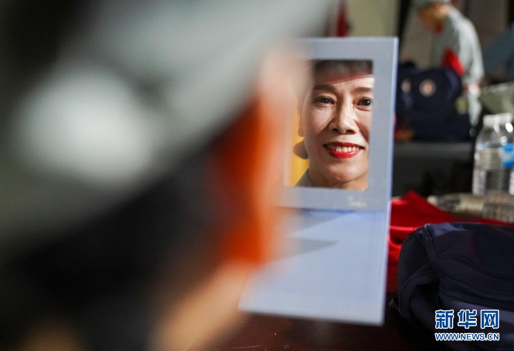 长征源合唱团的一名团员在参加第500场《长征组歌》公益演出前化妆(5月19日摄)。新华社记者 陈晔华 摄