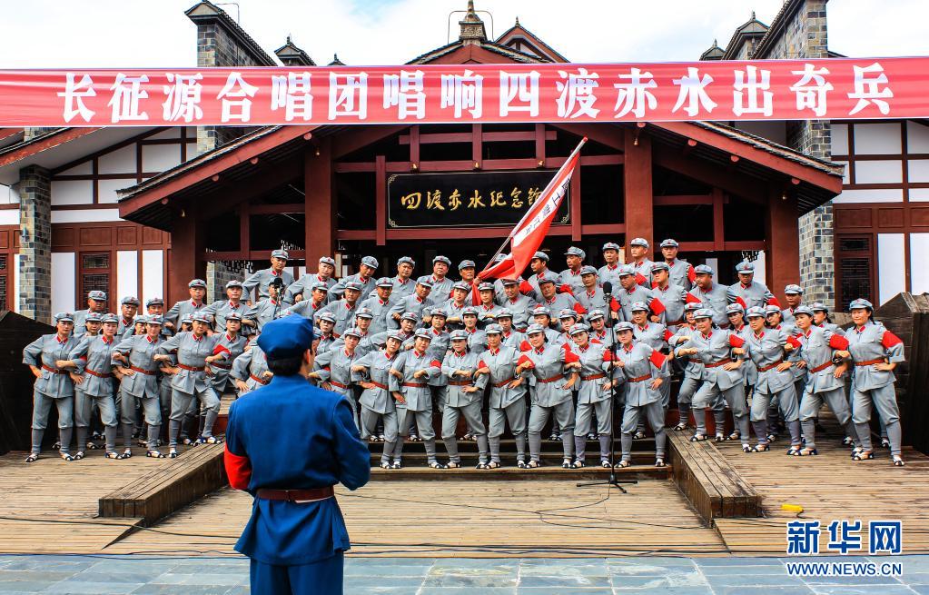 长征源合唱团在贵州省遵义市习水县演出(2016年8月15日摄)。新华社发