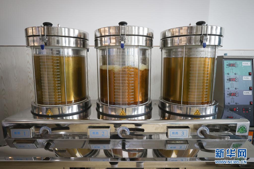 这是5月23日拍摄的在进行煎药的自动煎药机。