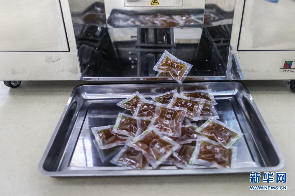 这是5月23日拍摄的在进行成品封装的自动煎药机。