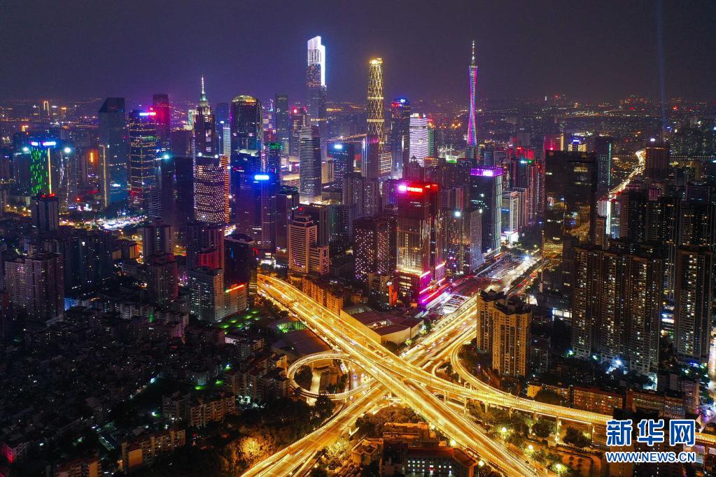 广州珠江新城城市新中轴线夜景(2020年10月2日摄,无人机照片)。