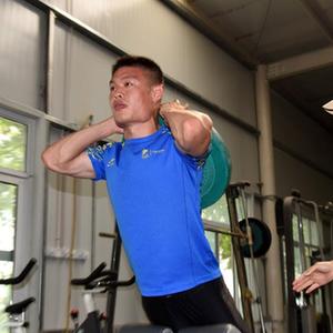5月24日,李茂大在训练中准备起跑。