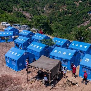漾濞县苍山西镇秀岭村大地埂组陈家村临时安置点位于一处缓坡上,15顶蓝色的帐篷有序排列。5月21日云南漾濞6.4级地震发生后,这里成了陈家村15户67位村民临时的“家”。地震中,处于震中的陈家村村民房屋受损较为严重,大部分房屋拉裂损坏,部分房屋整体倒塌损毁,地面开了许多裂缝。