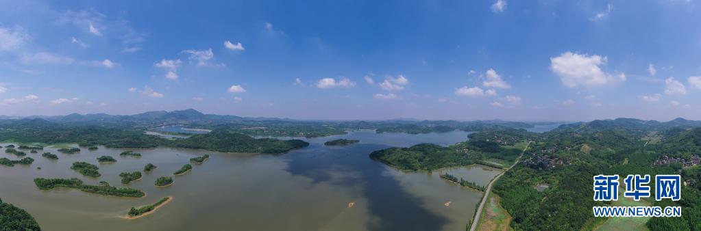 5月17日拍摄的江苏溧阳天目湖景色(无人机全景照片)。新华社记者 季春鹏 摄