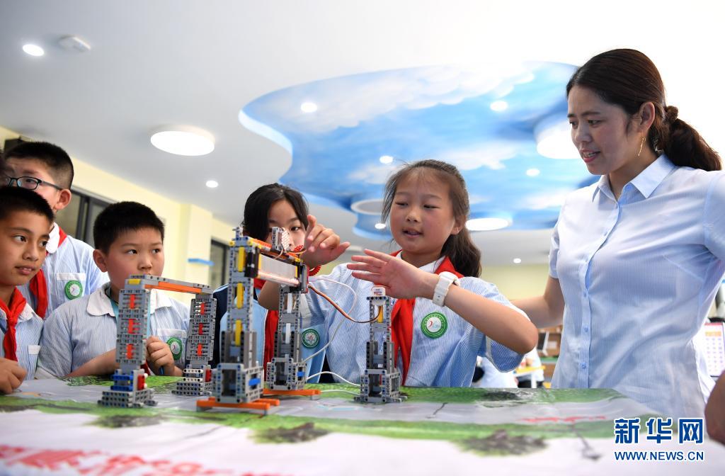 在全国科技活动周期间,安徽省合肥市肥西县花岗学区中心学校举办“小创客科技秀”活动,展现学生们的创新成果和动手能力。