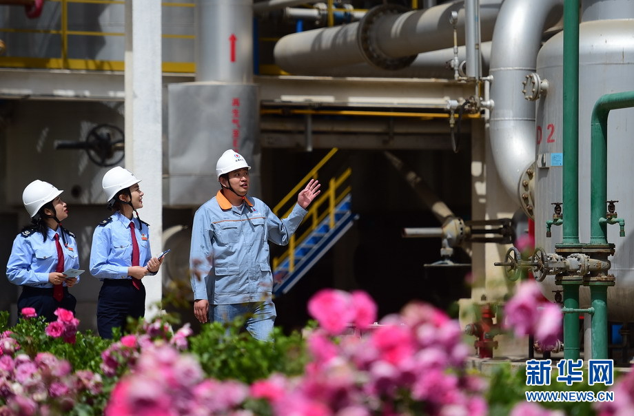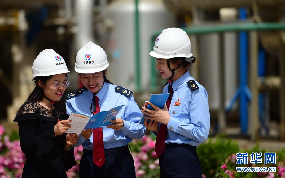 5月24日,任丘市税务局工作人员在一家化工企业了解企业运行情况,宣讲有关环保税征收政策。新华网发(傅新春 摄)