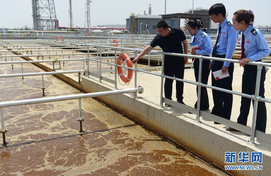 5月24日,任丘市税务局工作人员走访一家污水处理厂,掌握污水处理最新技术指标。新华网发(傅新春 摄)