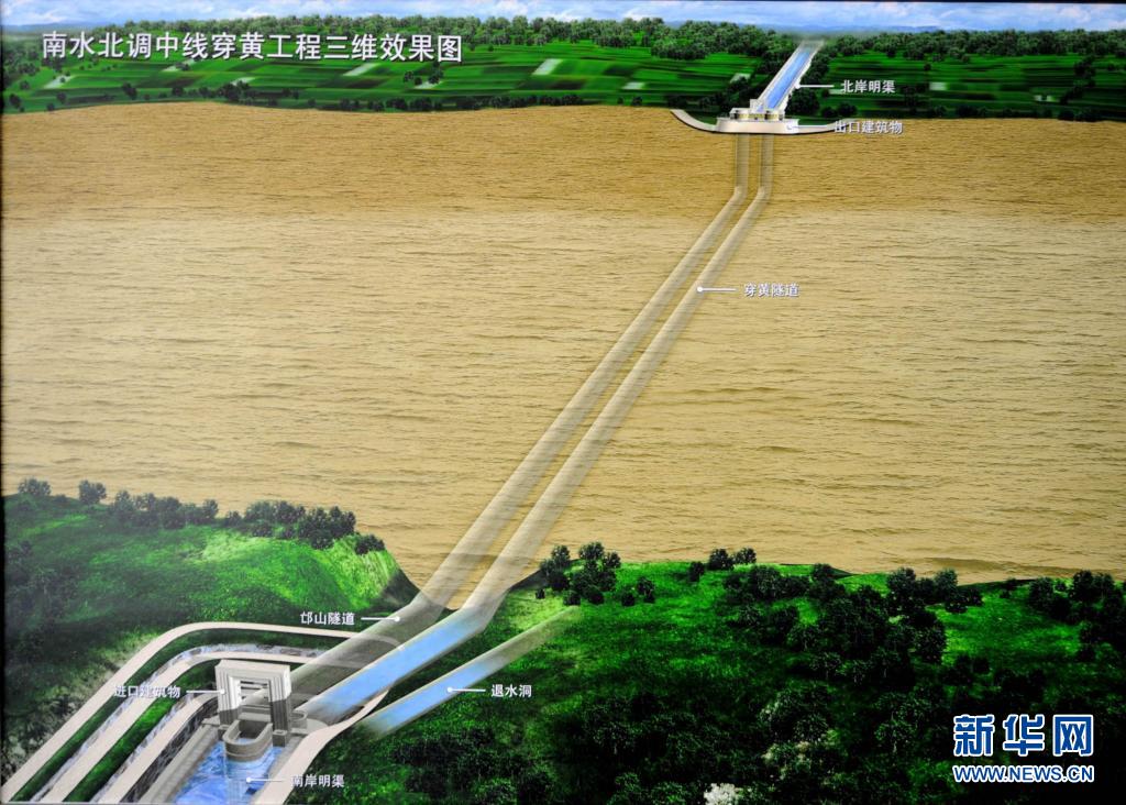 这是2010年6月22日翻拍的南水北调中线穿黄工程三维效果图。新华社记者 朱祥 摄