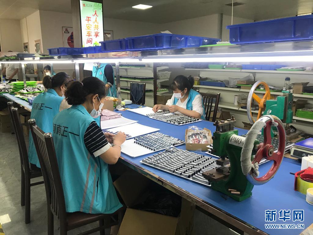 5月19日,工人在河南鹿邑一家化妆刷企业生产车间忙碌。