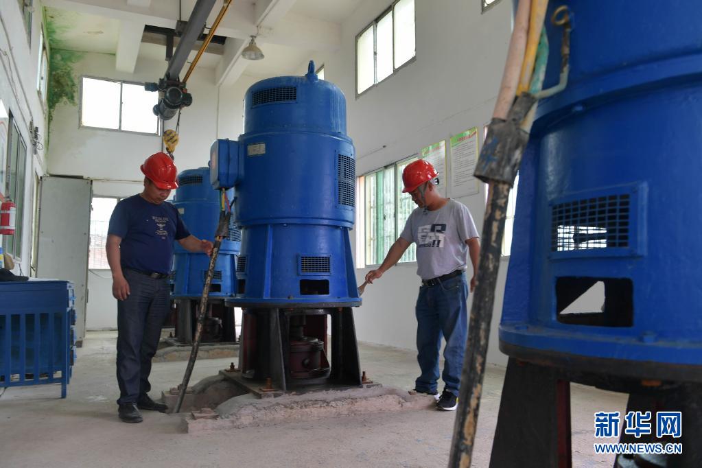 5月25日,在南昌县蒋巷镇西舍泵站,工作人员在巡查泵站排涝情况。