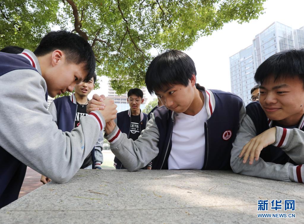 5月25日,江苏省苏州市第五中学的高三学生在掰手腕。