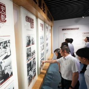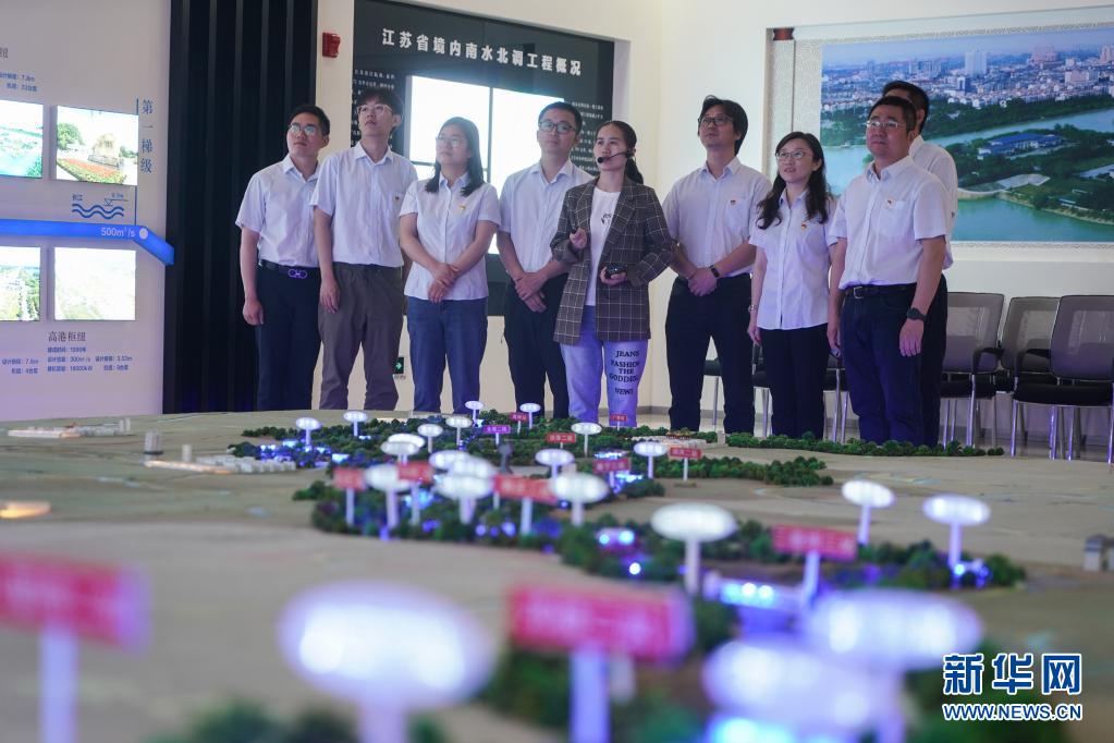 5月26日,国网扬州市江都区供电公司共产党员服务队队员在江都水利枢纽展厅参观学习。