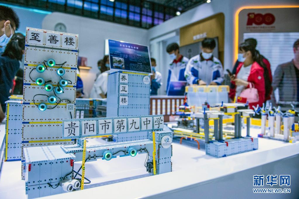 5月26日,贵阳市第九中学的学生在“数博会”上向参会者介绍他们搭建的智慧城市模型。