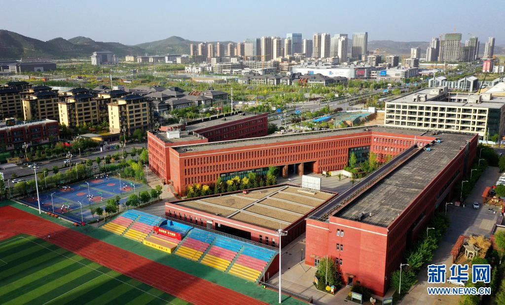 5月7日拍摄的延安新区第一中学(无人机照片)。新华社记者 刘潇 摄