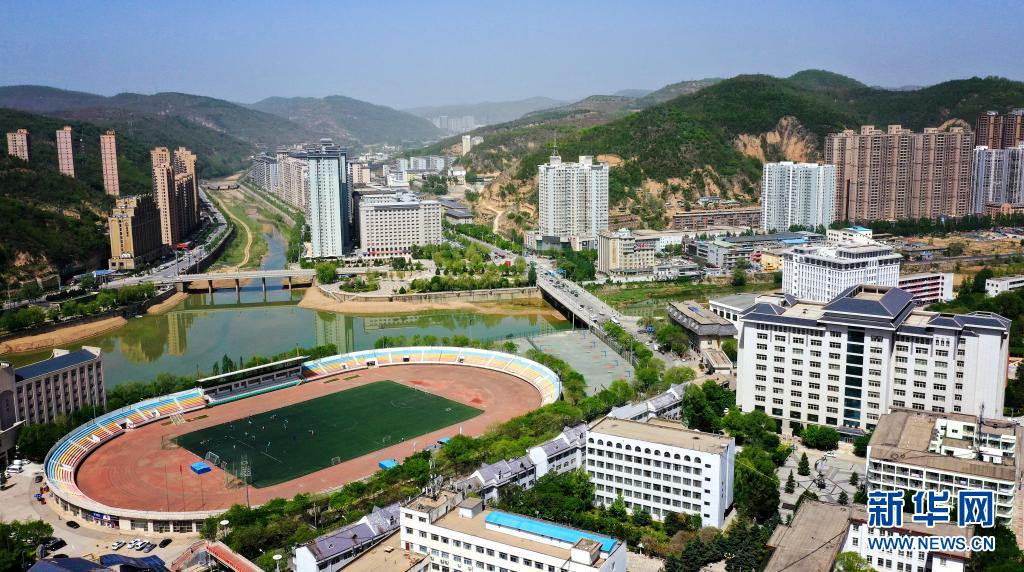 5月8日拍摄的延安市区(无人机照片)。新华社记者 刘潇 摄