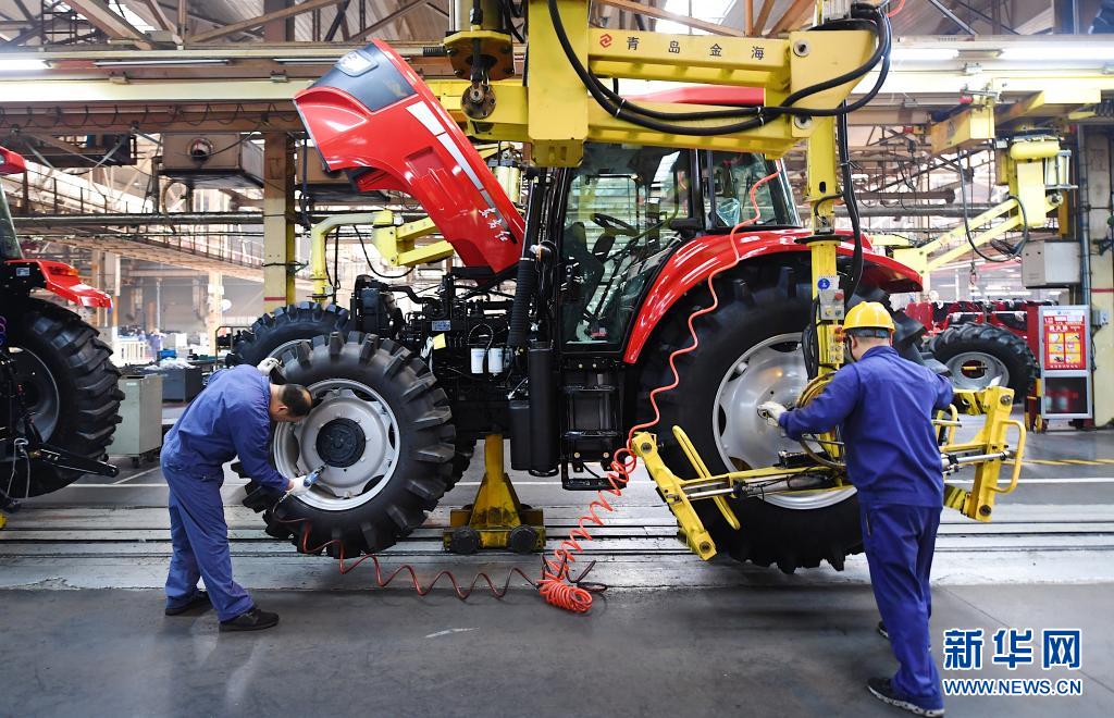 5月21日,工人在中国一拖生产车间进行东方红拖拉机装配作业。