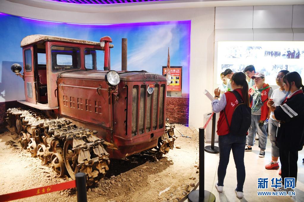 5月21日,游客在中国一拖东方红农耕博物馆参观。