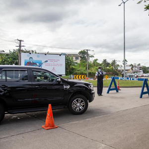 5月26日,警方在斐济首都苏瓦一个路口检查过往车辆。