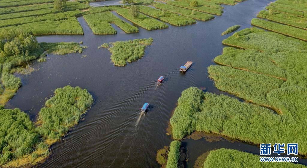 这是5月25日在雄安新区拍摄的白洋淀美景(无人机照片)。新华社记者 才扬 摄