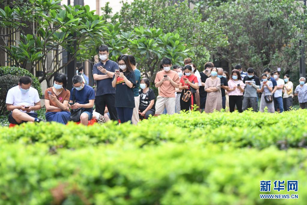 5月27日,在广州荔湾区中海锦佳华庭小区核酸检测点,市民排队等待核酸检测。